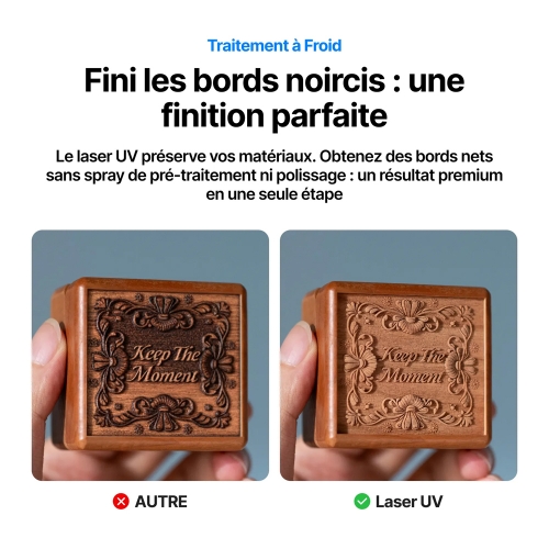 Optez pour la xTool F2 Ultra UV, un graveur laser UV 5 W conçu pour les applications de marquage nécessitant une très haute précision. Sa technologie UV à traitement à froid permet de réaliser des gravures nettes et propres, sans altérer les surfaces sensibles.