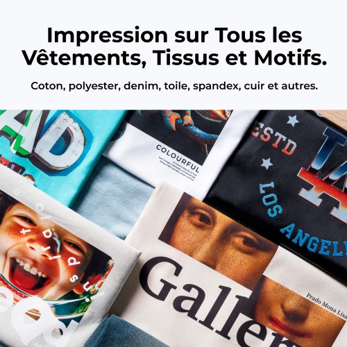La xTool Apparel Printer est une imprimante textile professionnelle DTF (Direct To Film). Équipée de deux têtes Epson I1600, elle offre une qualité d’impression inégalée, une précision extrême et une compatibilité étendue avec tous types de textiles : coton, polyester, denim, toile, nylon, spandex et bien plus.