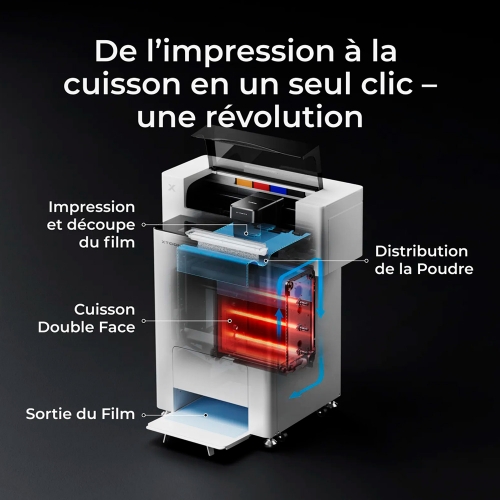 • Grande capacité : jusqu’à 2 kg de poudre, format film A3+ (390 mm)