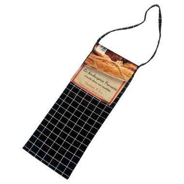 Ce sac à pain en tissu toucher coton naturel à carreaux noirs est doté d'un rabat sublimable en tissu à l'aspect lin écru et doux au toucher.